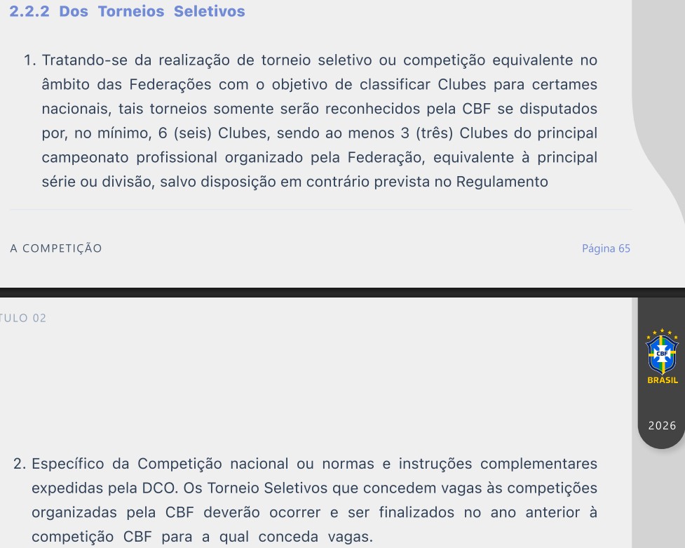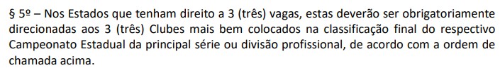 Em 2025, o estado tinha direito a duas vagas. E só poderia utilizar o estadual como critério de classificação para o torneio. Já federações que tinham três vagas poderiam destinar uma delas ao vencedor de torneio seletivo. Agora, quem tem direito a três tem que entregar todas elas aos melhores classificados do estadual. Nessa esteira, o Campinense, terceiro colocado geral do Campeonato Paraibano 2026 está atento ao tema.