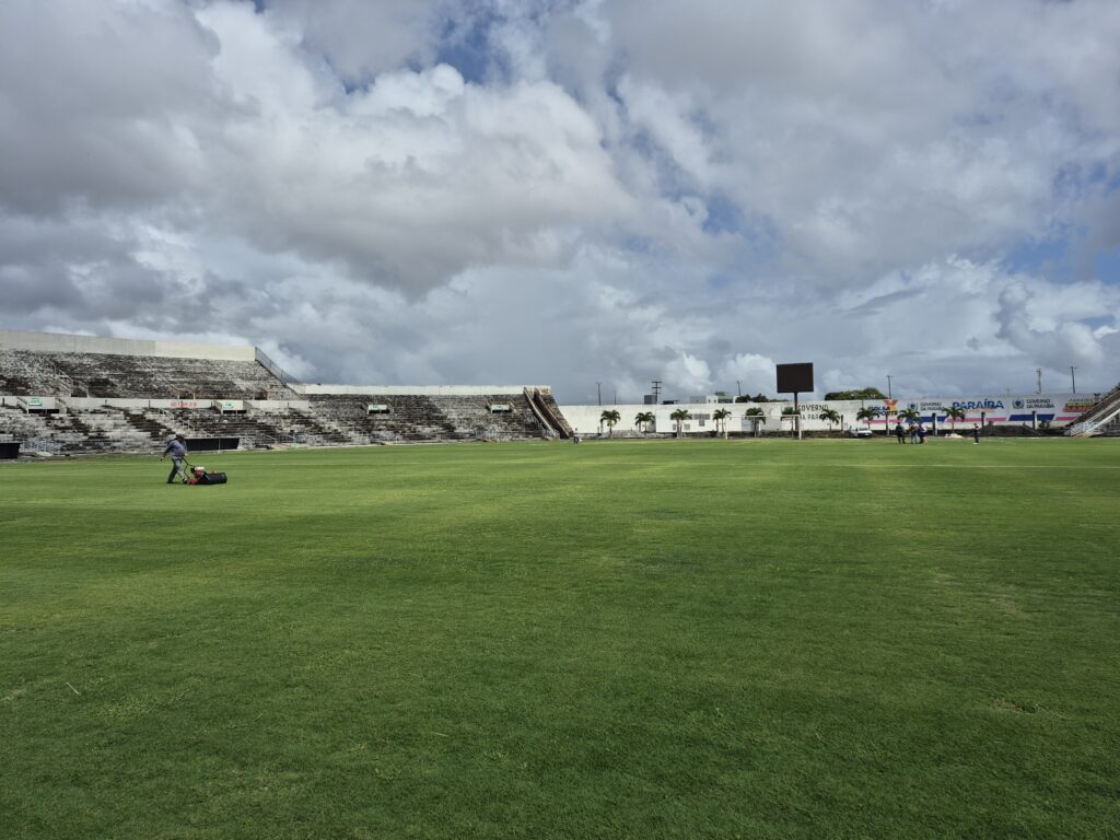 Com o martelo batido sobre o local do primeiro jogo do Botafogo-PB no Campeonato Paraibano 2026, diante do Esporte de Patos, com a partida marcada para o Estádio Frasqueirão, em Natal, neste domingo, o trabalho no gramado do Estádio Almeidão segue a todo vapor.